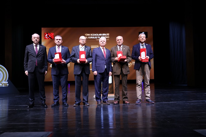 Önceki dönemlerde Türk Eczacıları Birliği Başkanlığı görevini yürütmüş olan Ecz. İbrahim Çetinkaya, Ecz. Mehmet Domaç, Ecz. Erdoğan Çolak ve Ecz. Arman Üney’e de Türk Eczacıları Birliğine sundukları katkılar nedeniyle plaket takdim edildi.