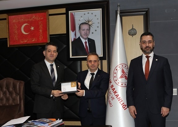 Türk Eczacıları Birliği II. Başkanı Uzm. Ecz. Abdullah Caner Güven ve Türk Eczacıları Birliği Genel Sekreteri Uzm. Ecz. Taner Ercanlı, Türkiye İlaç ve Tıbbi Cihaz Kurumu (TİTCK) Başkanı Prof. Dr. Ahmet Ayar’ı makamında ziyaret etti.
